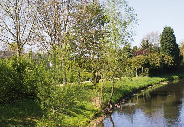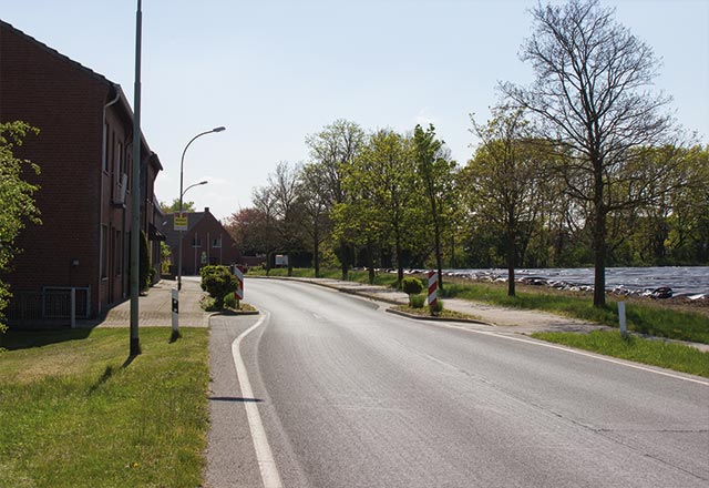 Zur Verkehrsberuhigung innerhalb des Ortes wurden die Ortseinänge von Wemb künstlich verengt.